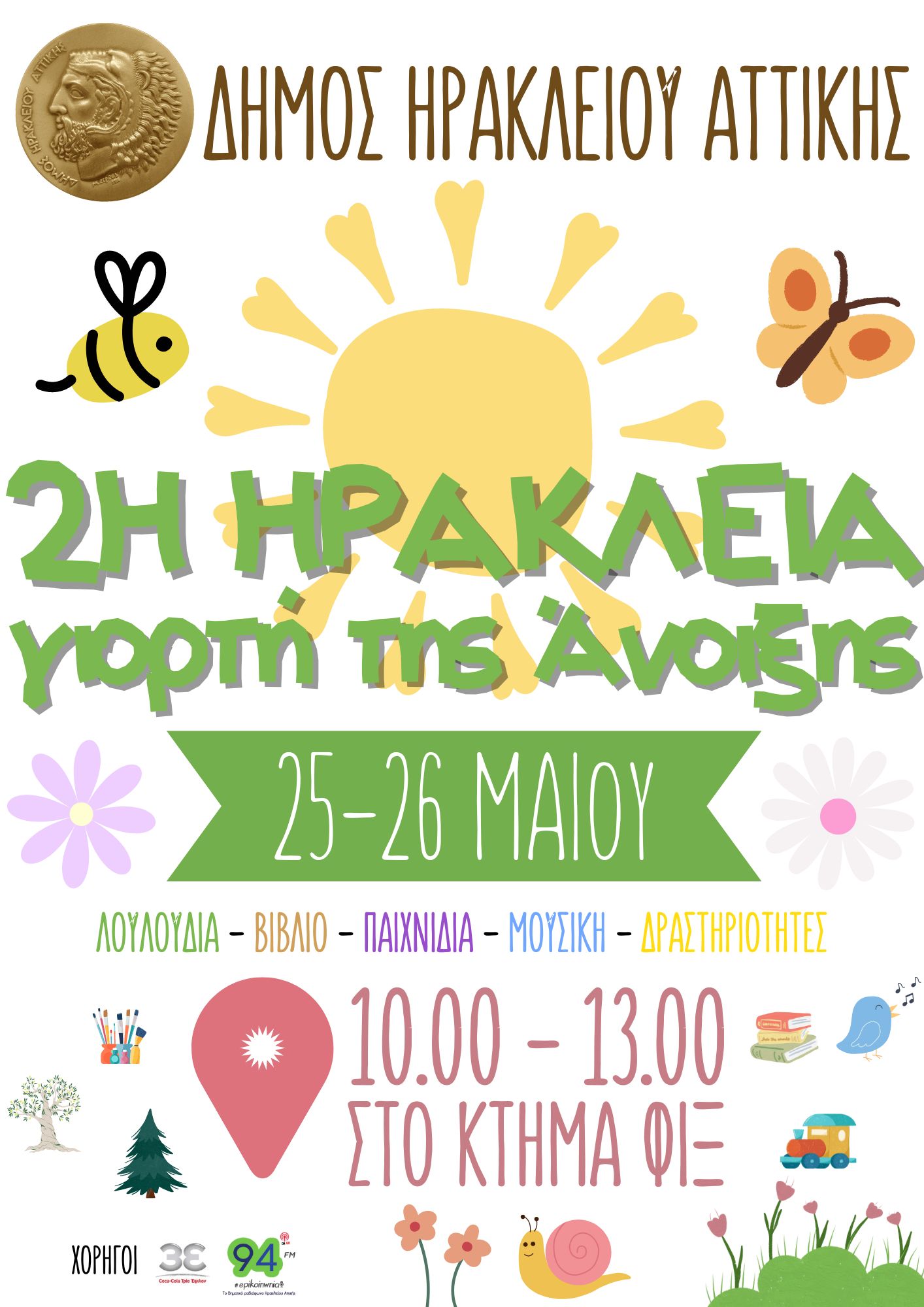 Αυτό το Σαββατοκύριακο, 25 και 26 Μαΐου, η επίσκεψη στο Κτήμα Φιξ είναι ξεχωριστή… Ο Δήμος Ηρακλείου Αττικής διοργανώνει την 2η Ηράκλεια Γιορτή της Άνοιξης και έχει ετοιμάσει δράσεις, παιχνίδια, μουσική και εκπλήξεις για μικρούς και μεγάλους. Από το πρωί έως το απόγευμα μέσα στο μεγαλύτερο πάρκο της πόλης θα φιλοξενείται έκθεση λουλουδιών και θα υπάρχουν παιχνίδια για τα παιδιά καθώς και δημιουργική απασχόληση με πρόσημο την Άνοιξη και το Περιβάλλον.