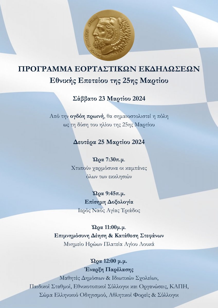 Εκδηλώσεις μνήμης και τιμής για την Εθνική Επέτειο της 25ης Μαρτίου