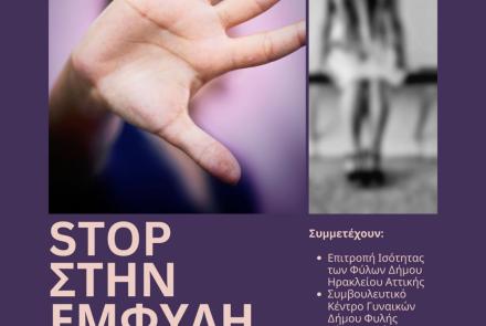 Με σύνθημα το τετράπτυχο «ενημερώνουμε – ευαισθητοποιούμε – προλαμβάνουμε – σταματάμε» ο Δήμος Ηρακλείου Αττικής οργανώνει δράση κατά της έμφυλης βίας το πρωί της Τετάρτης 4 Δεκεμβρίου στην κεντρικ