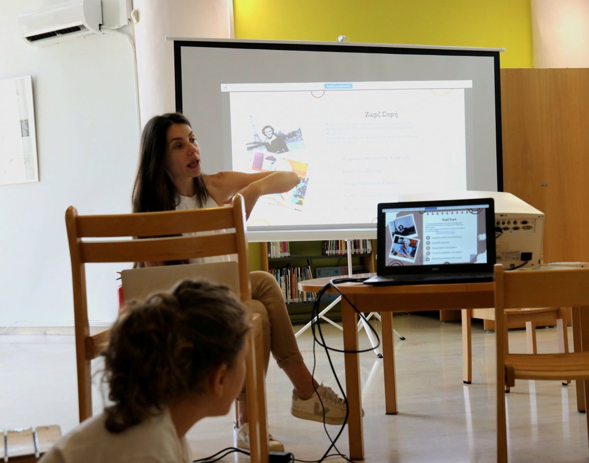 Ακολούθησε παρουσίαση σε προτζέκτορα με τη ζωή και το έργο των δύο συγγραφέων ώστε να γνωρίσουν τα παιδιά καλύτερα την Άλκη Ζέη και τη Ζωρζ Σαρή .