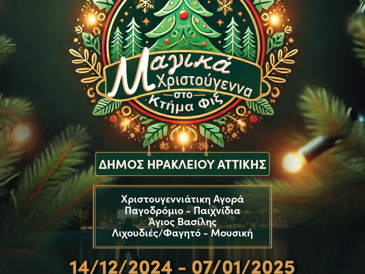 Ένα μαγικό, Χριστουγεννιάτικο Χωριό ανοίγει τις πόρτες του στο Κτήμα Φιξ, το μεγαλύτερο πάρκο του Δήμου Ηρακλείου Αττικής. Από τις 14 Δεκεμβρίου έως τις 7 Ιανουαρίου της νέας χρονιάς, μικροί και μεγάλοι επισκέπτες θα μπορούν να κάνουν τις γιορτινές τους βόλτες μέσα στο πάρκο.