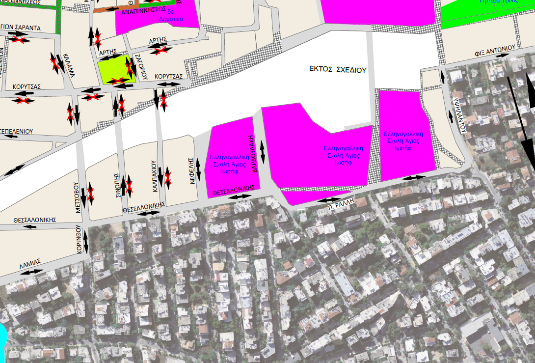 Mετά από αιτήσεις δημοτών, και μετά από αυτοψία που διενήργησε η αρμόδια Τεχνική Υπηρεσία, διαπίστωσε ότι στις διαδημοτικές οδούς Π. Ράλλη και Θεσσαλονίκης παρατηρούνται κυκλοφοριακά προβλήματα λόγω της αμφίδρομης κίνησης των οχημάτων, της άναρχης στάθμευσης και στις δύο πλευρές των οδών (ειδικά στην οδό Π. Ράλλη) της μη ύπαρξης τοπικά πεζοδρομίων (στην δυτική παρειά της οδού Π. Ράλλη) σε συνδυασμό με τα γεωμετρικά χαρακτηριστικά τους (πλάτος οδοστρώματος οδών 6 – 7 μ.).