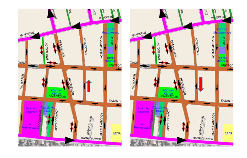 - Μονοδρόμηση της οδού στο προαναφερόμενο τμήμα με αντίθετη φορά (από την οδό Μητροπούλου προς την οδό Καζαντζάκη), σύμφωνα με το αίτημα των πολιτών.