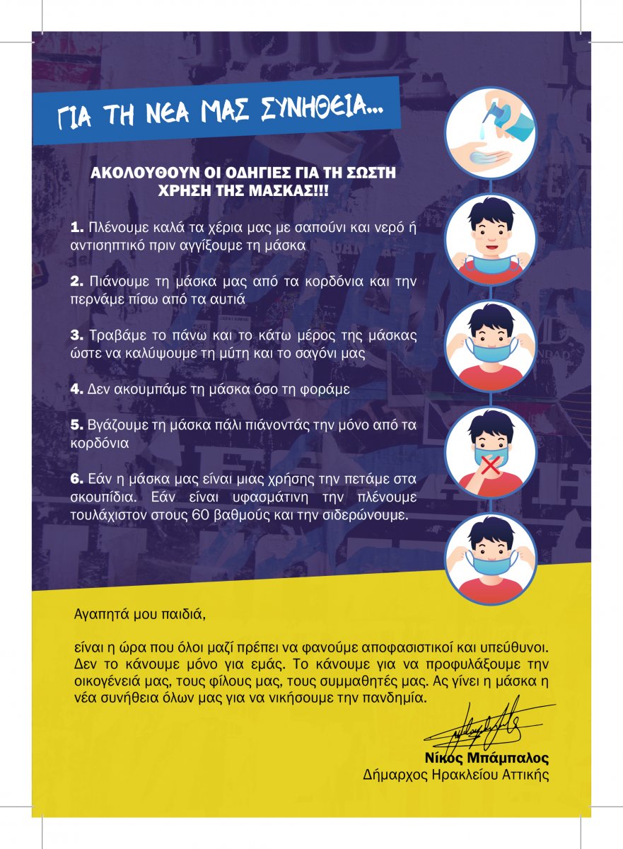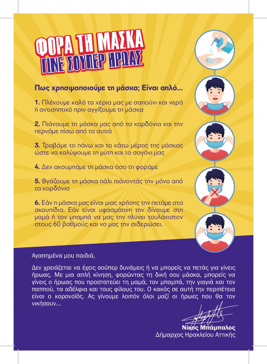 Η καμπάνια του Δήμου Ηρακλείου Αττικής για να μάθουν τα παιδιά της πόλης την σωστή χρήση της μάσκας προστασίας στο σχολείο, για να προστατεύσουν τον εαυτό τους και τους γύρω τους κατά την διάρκεια της έξαρσης της πανδημίας.