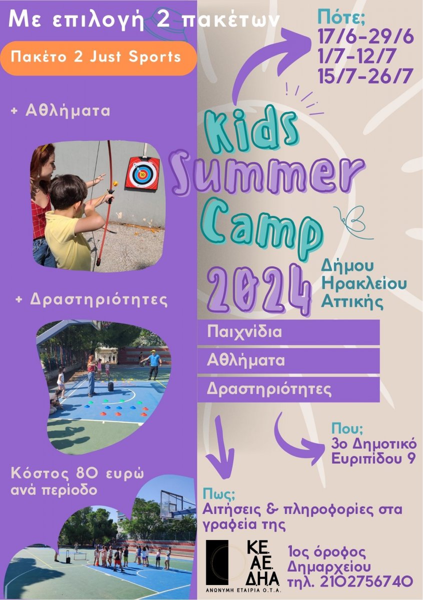 Από τα μέσα Ιουνίου, έως το τέλος Ιουλίου θα διαρκέσει το φετινό πρόγραμμα καλοκαιρινής απασχόλησης που, για ακόμα μια χρονιά, ο Δήμος Ηρακλείου Αττικής έχει ετοιμάσει για τα παιδιά της πόλης, προκειμένου να τους προσφέρει στιγμές δημιουργίας, παιχνιδιού και άθλησης με το που θα κλείσουν τα σχολεία.