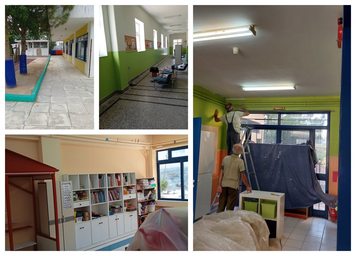 Πέρα από τις καθιερωμένες, ετήσιες εργασίες που ο Δήμος εκτελεί κάθε καλοκαίρι στα σχολεία: ελαιοχρωματισμός εσωτερικών – εξωτερικών χώρων, καθαρισμοί αιθουσών – προαύλιων, επιδιορθώσεις – βελτιώσεις, διαγραμμίσεις διαβάσεων κ.α., φέτος η δημοτική αρχή προχώρησε σε ευρύτερες παρεμβάσεις σε μια ακόμα ομάδα σχολείων της πόλης που τις είχαν ανάγκη.