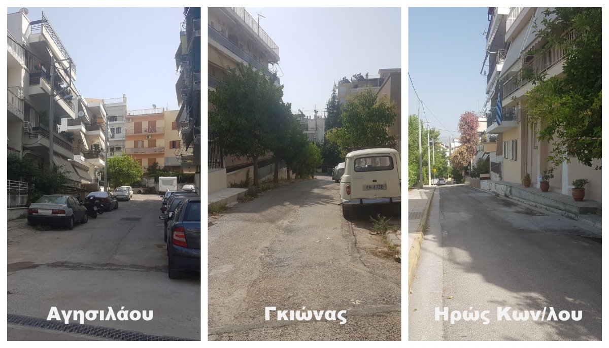 Ειδική πρόβλεψη υπάρχει για τις οδούς Γκιώνας, Ηρώς Κωνσταντοπούλου και Αγησιλάου οι οποίες, ως στενοί, μικροί δρόμοι, δεν θα στρωθούν με νέα άσφαλτο αλλά με κυβόλιθους. Με την πεζοδρόμησή τους η Ηρώς Κωνσταντοπούλου και η Αγησιλάου θα μπορέσουν έτσι να «κουμπώσουν» στις ήδη στρωμένες με κυβόλιθους, κάθετες σε αυτές οδούς ήπιας κυκλοφορίας: Κοραή και Αριστοτέλους αντίστοιχα.