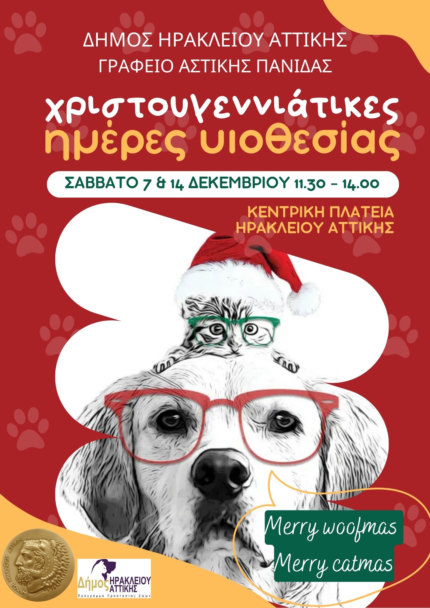 Χριστουγεννιάτικες ημέρες υιοθεσίας ζώων στον Δήμο Ηρακλείου Αττικής