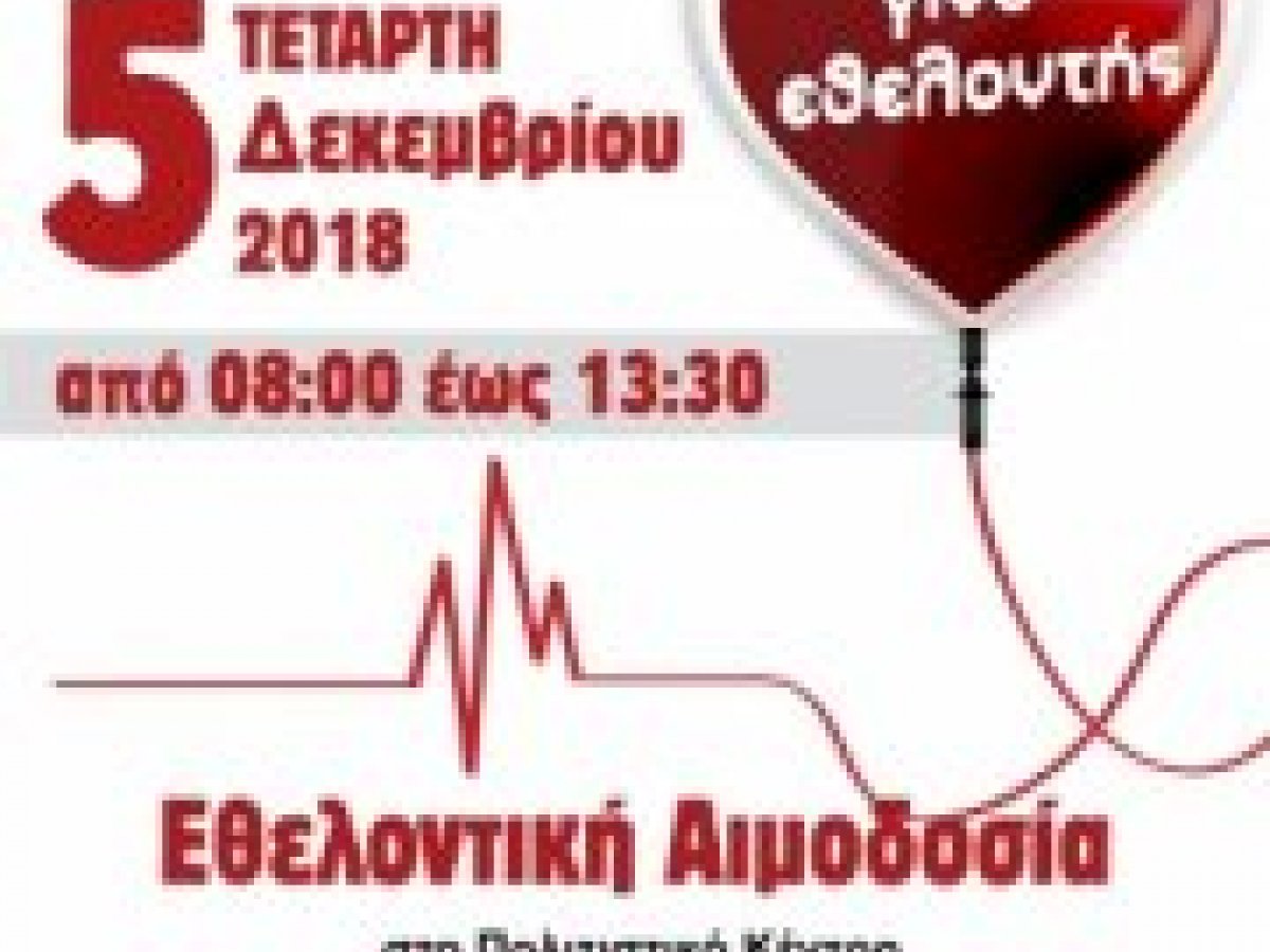 Η αιμοδοσία θα γίνει, παραδοσιακά, από το κινητό συνεργείο του Νοσοκομείου Παίδων Αγία Σοφία.