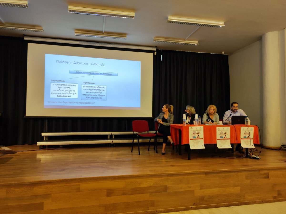 Γιατροί με αντίστοιχες ειδικότητες μίλησαν για κοινές ασθένειες, την πρόληψη και την αντιμετώπισή τους, απαντώντας, παράλληλα, στις ερωτήσεις του κοινού. Συγκεκριμένα: «Συνήθη προβλήματα υγείας στο σπίτι. Πώς να τα διαχειριστώ;», με ομιλητή τον Πολύδωρο Κωνσταντινίδη, MD, PhD, Ειδικός Παθολόγος-Εντατικολόγος, Διδάκτωρ Πανεπιστημίου Αθηνών, Επιμελητής Παθολογικής Κλινικής-Θριάσειο Νοσοκομείο, «Παρηγορική και Γηριατρική φροντίδα», με την Εύη Βραχνού, τ. Διευθύντρια Αναισθησιολογικού Τμήματος και ιατρείου πόνου-ΠΦ Αγίου Σάββα, Μέλος της ΠΑΡΗΣΥΑ, «Ας μιλήσουμε για την κατάθλιψη», με ομιλήτρια την Παναγιώτα Φέξη, MD, MRCPsych, Ψυχίατρος, Επιστημονικά Υπεύθυνη EAAD-Best , ΕΠΑΨΥ. Την συζήτηση συντόνισε η Μαίρη Καραμπέτσου, Εργοθεραπεύτρια MSc, Προϊσταμένη Τμήματος Προστασίας και Προαγωγής της Δημόσιας Υγείας Δήμου Ηρακλείου Αττικής.