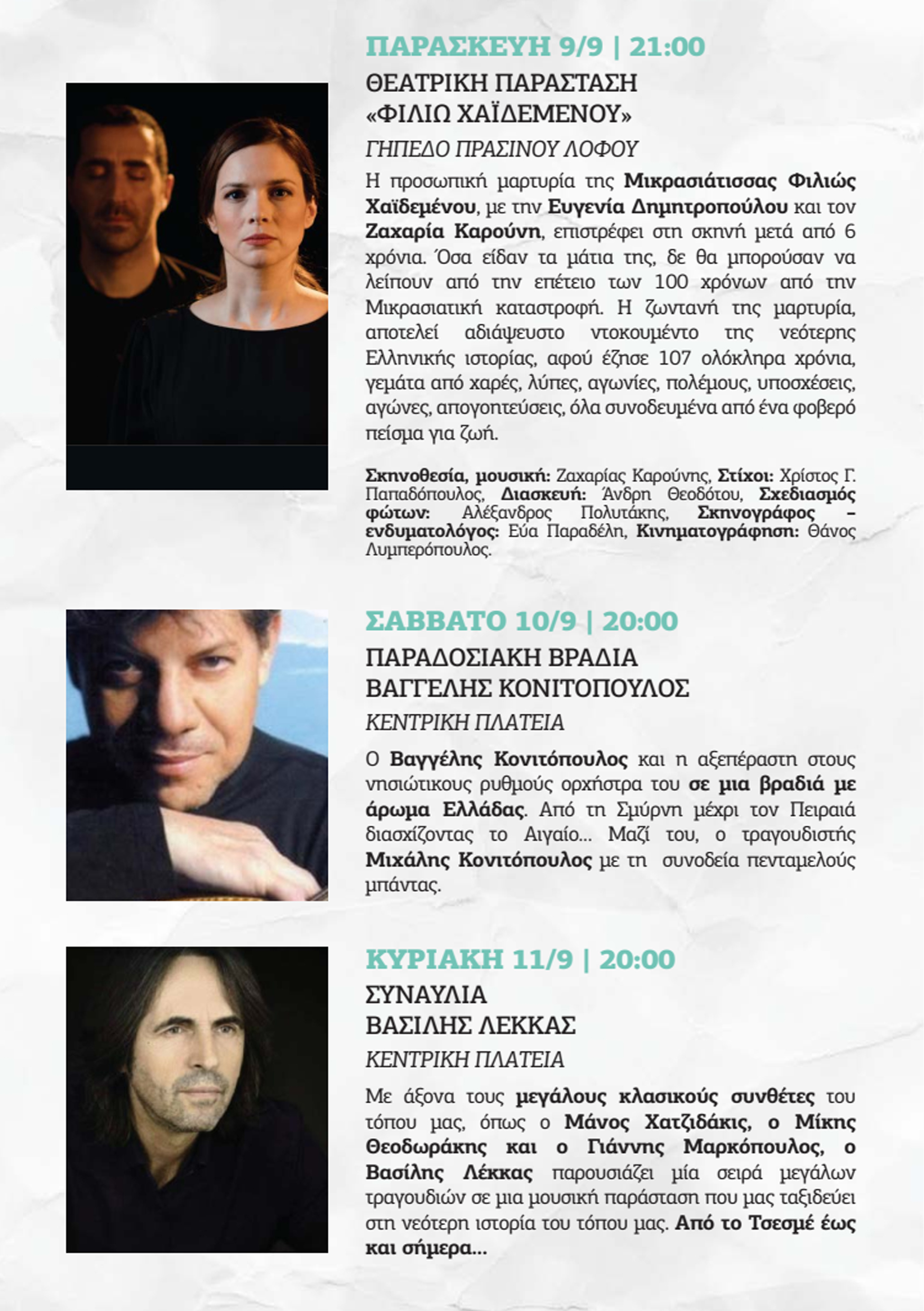 Σάββατο 10/9 20.00 Βαγγέλης Κονιτόπουλος κεντρική πλατεία