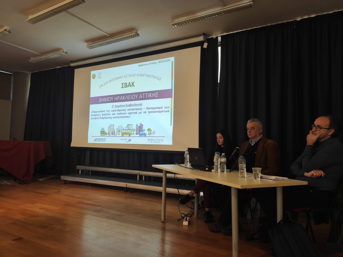 Την 2η δημόσια διαβούλευση στην διαδικασία κατάρτισης του Σχεδίου για την Βιώσιμη Αστική Κινητικότητα στην πόλη, του σχεδίου που θα περιγράψει τον κυκλοφοριακό χάρτη του Ηρακλείου για τις επόμενες δεκαετίες, πραγματοποίησε ο Δήμος Ηρακλείου Αττικής προκειμένου να δώσει την ευκαιρία σε φορείς αλλά, κυρίως, στους κατοίκους να γνωρίσουν τις πρώτες προτάσεις του Σχεδίου και να καταθέσουν τις αρχικές τους παρατηρήσεις.
