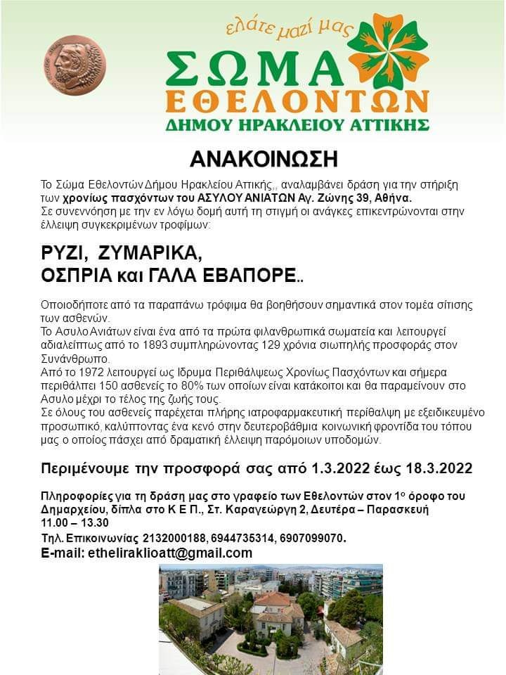 Το Σώμα Εθελοντών του Δήμου μας στηρίζει το Άσυλο Ανιάτων και περιμένει και τη δική μας βοήθεια. Δείτε περισσότερα: