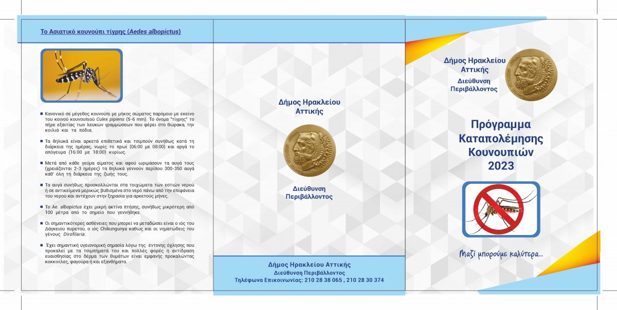 Την ετήσια καμπάνια ενημέρωσης των πολιτών για την καταπολέμηση των κουνουπιών ξεκινά ο Δήμος Ηρακλείου Αττικής. Μετά τις απαραίτητες, προληπτικές παρεμβάσεις που υλοποίησαν, και θα συνεχίσουν να υλοποιούν για όσο χρειάζεται, οι δημοτικές υπηρεσίες, ο Δήμος καλεί τους Ηρακλειώτες να εφαρμόσουν απλές, αλλά καίριες πρακτικές και στον προσωπικό τους χώρο - τις οποίες θα βρουν αναλυτικά στο σχετικό φυλλάδιο που διανέμεται αυτή την περίοδο - ώστε η συμμαχία Δήμου και κατοίκων να εξασφαλίσει ότι δεν θα υπάρξει πρόβλημα από την έντονη παρουσία κουνουπιών.
